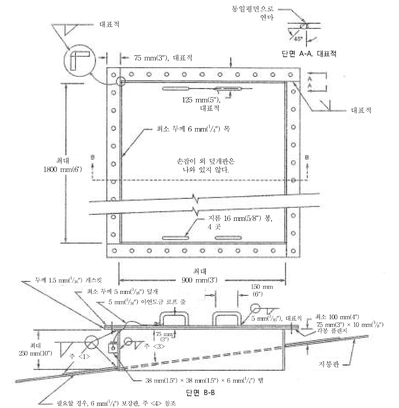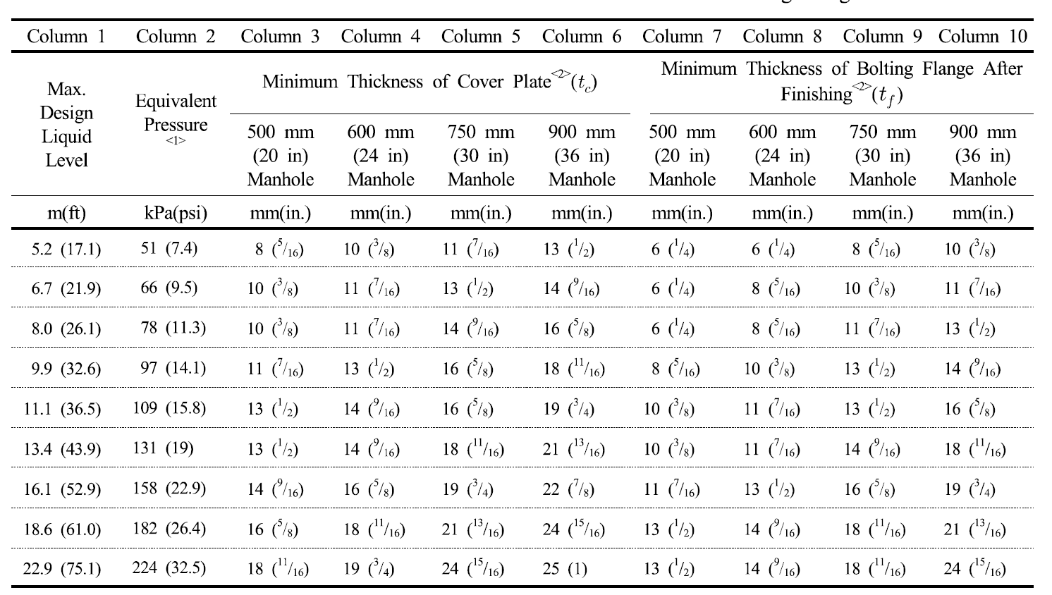 Tank 출입구 및 flang 는 tank 수위 (Max LEVEL) 및 압력에 따라 Cover plate 두께, flange 두께 등이 결정된다.