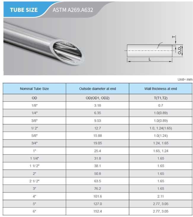 - 튜브: 외경과 두께 기준으로 크기가 표기됩니다. 정밀한 치수가 필요한 산업에서 사용됩니다.