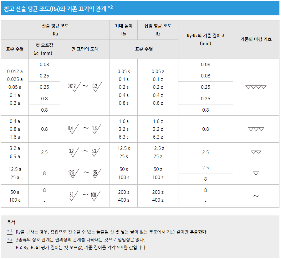 - 예를 들어, △ 3.2는 Ra 값이 3.2μm인 표면거칠기를 의미합니다.